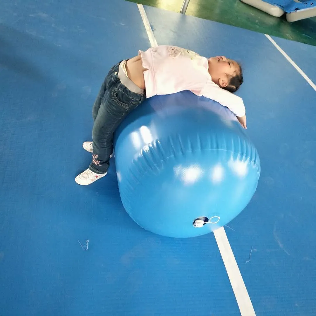 Children inflatable gymnastics cyclinder air barrel should not be too soft, in order to prevent unstable trampling down, the best kind of martial arts venue paved thick air mat, both not bad and can be stepped on. The standard children gymnastics air barrel is 100*60*60cm, which are inexpensive and practical. It's more economical if you buy them by yourself. You can buy two or three layers of household air mat, not as big as standard air mat. If you roll over, you can run up to three steps. A three-meter long is enough.